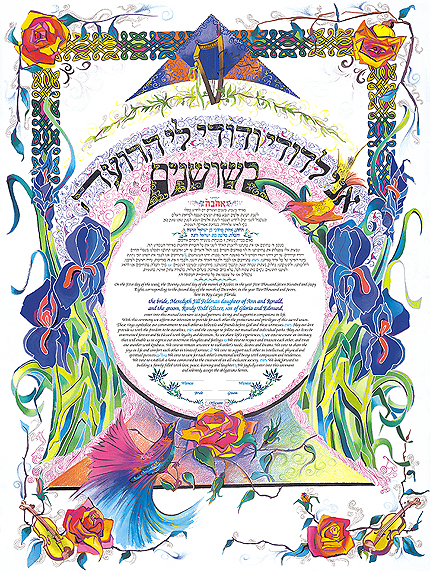 gorgeous roses. Gaily colored, Happy scene ketubah to