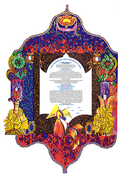 the fire, and all goes up to the blues cold colors (at the ketubah top)